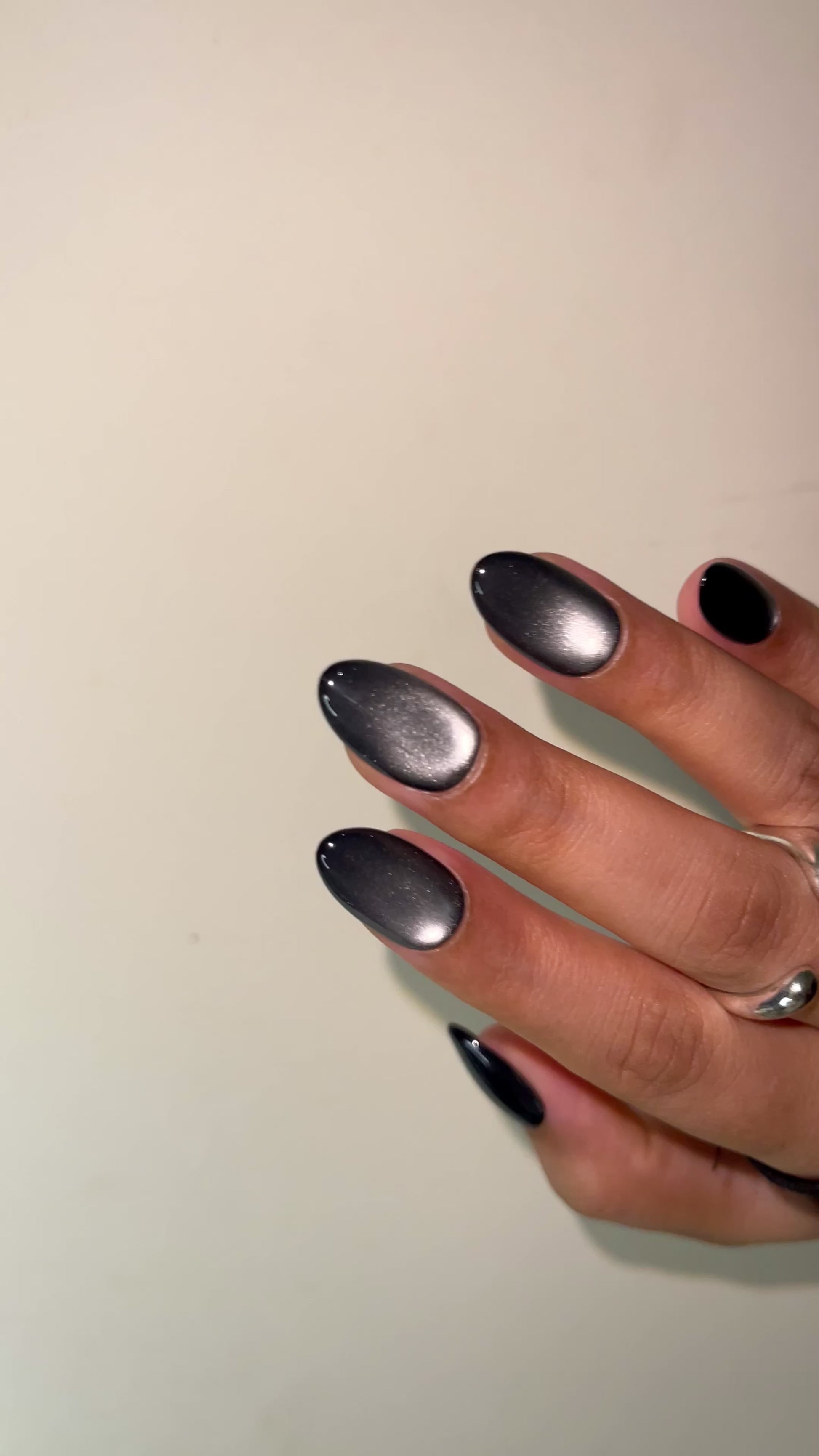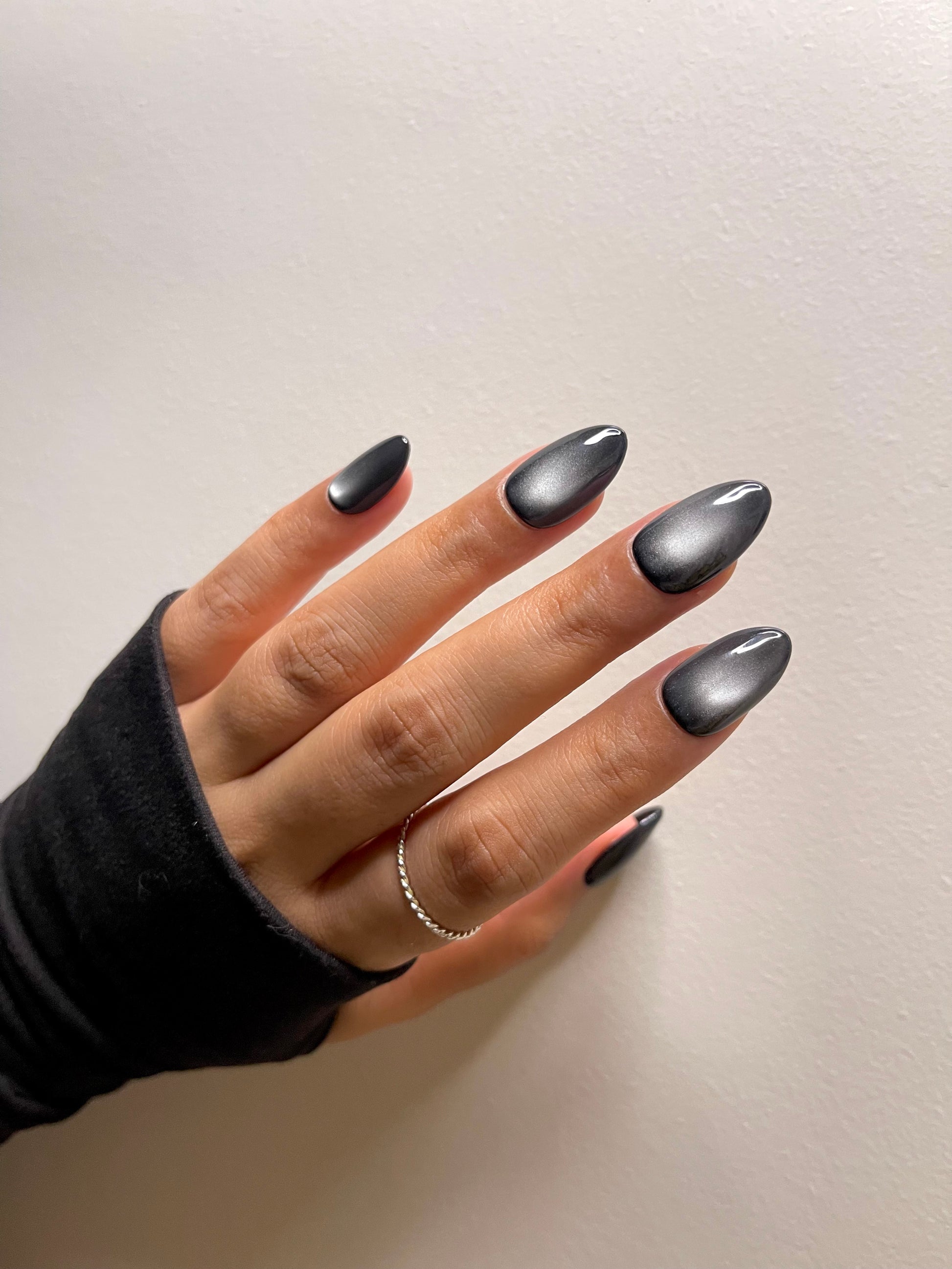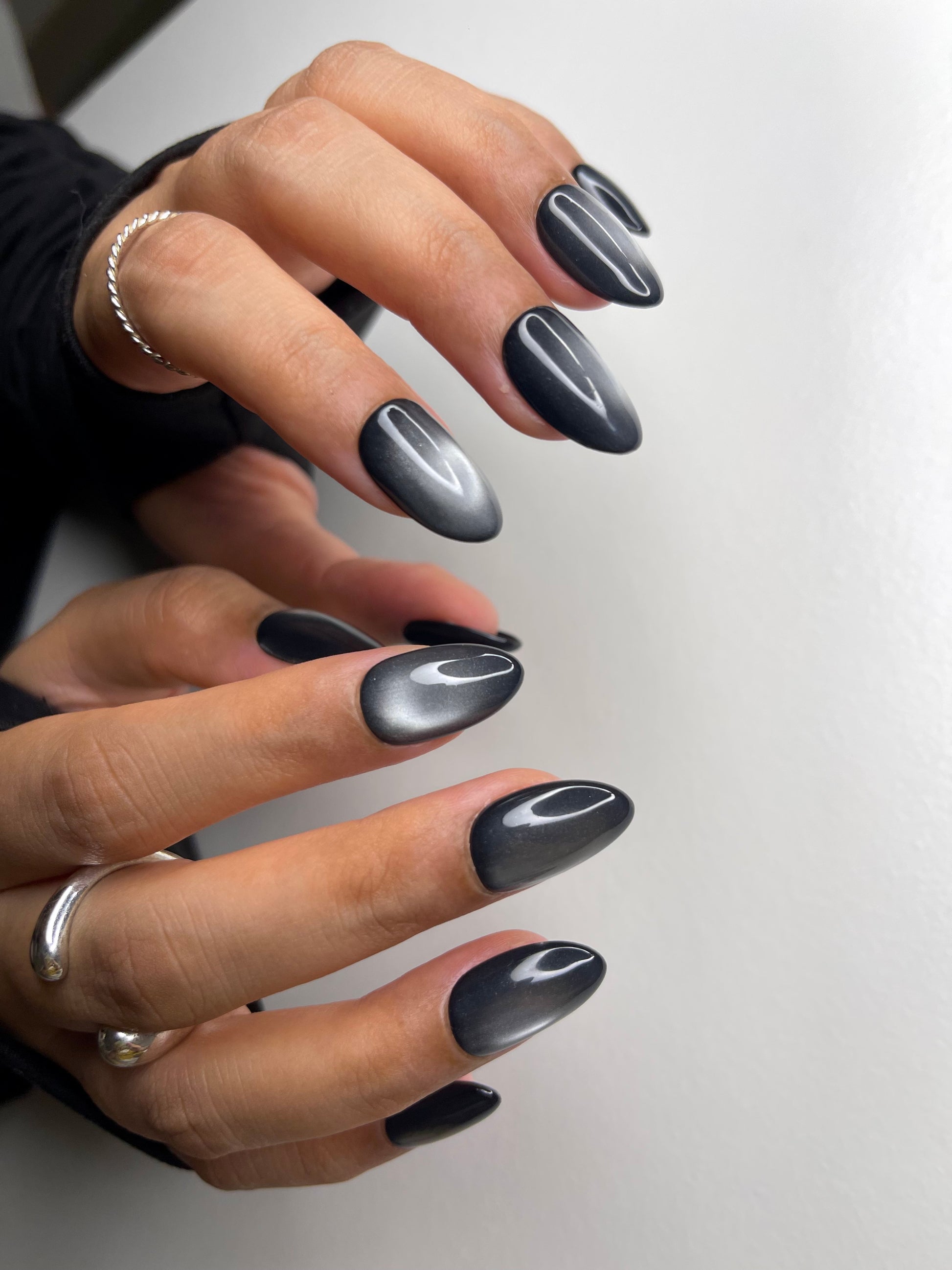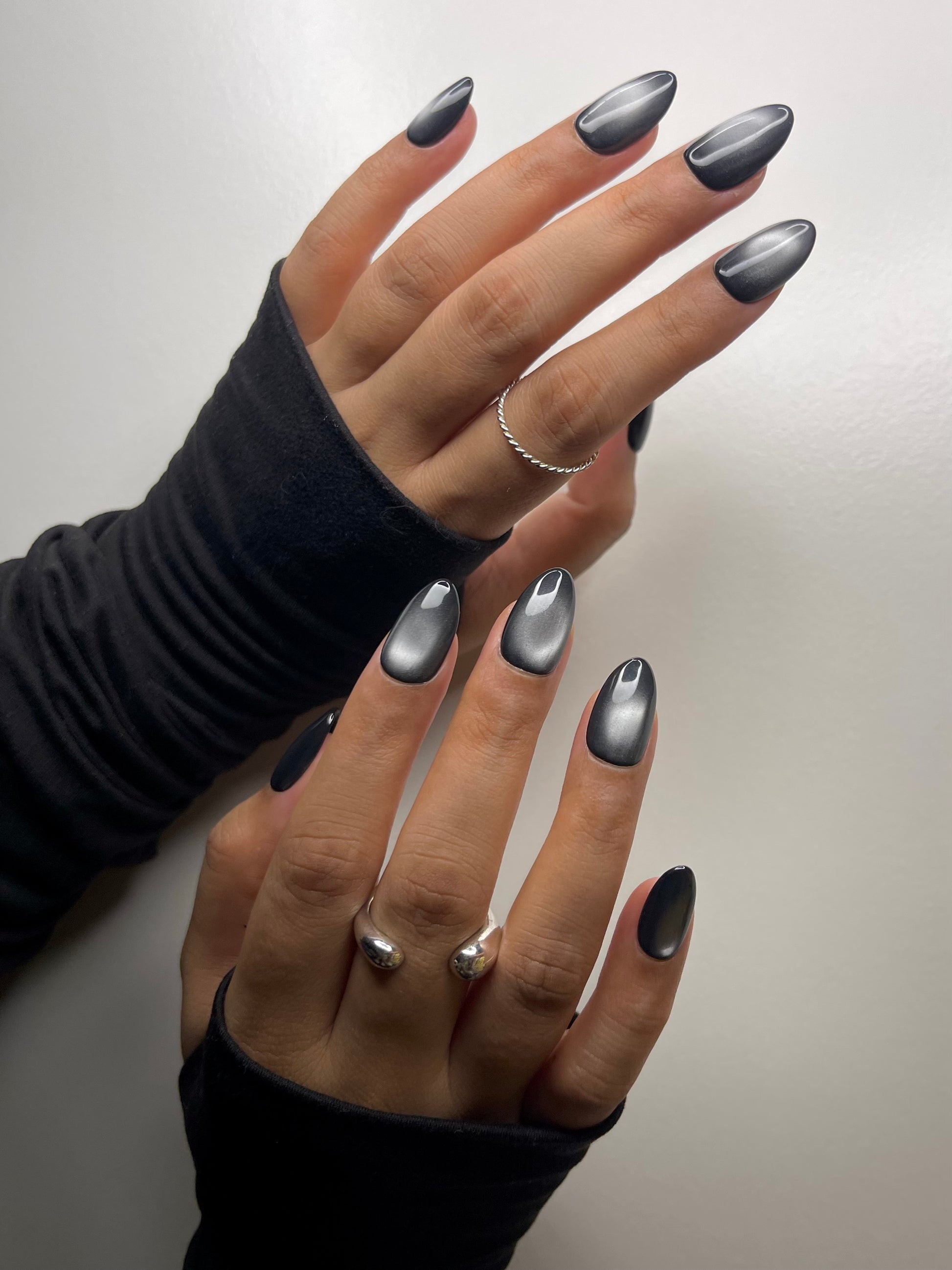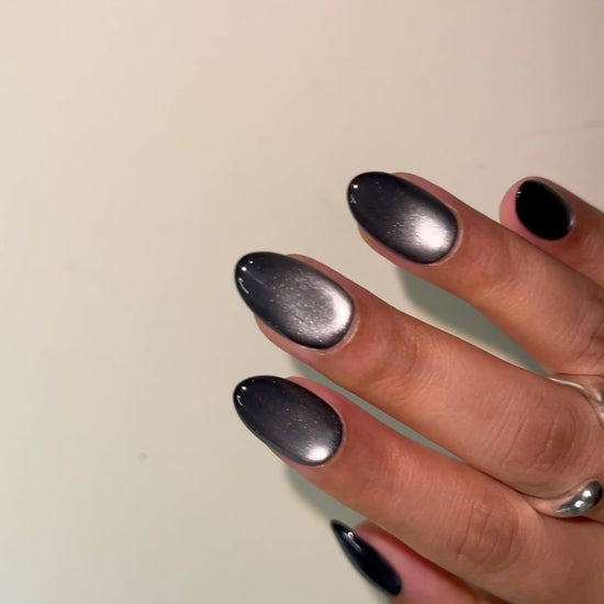 Deep, dimensional black with a magnetic cat-eye sheen—mysterious, bold, and effortlessly luxe.