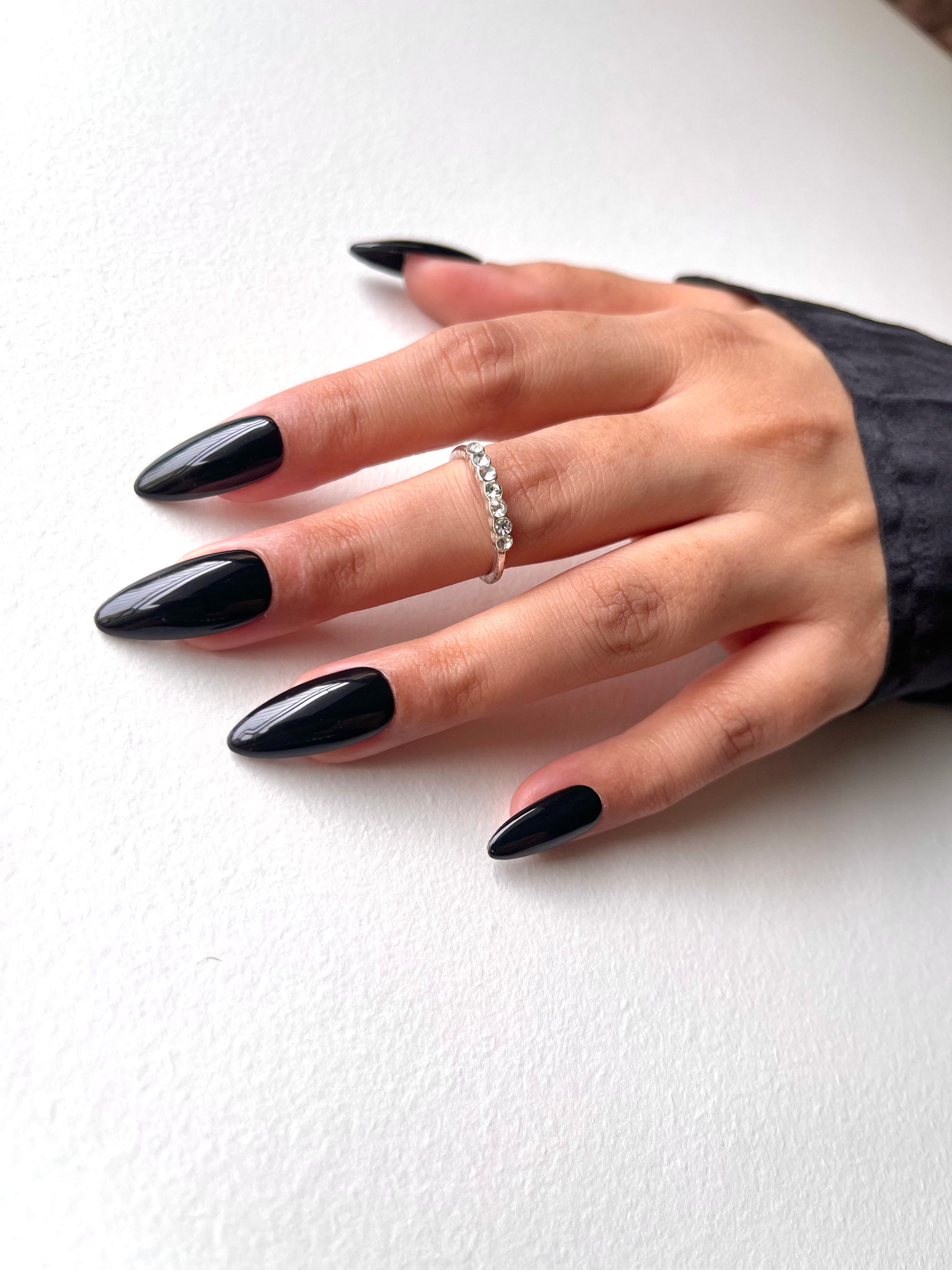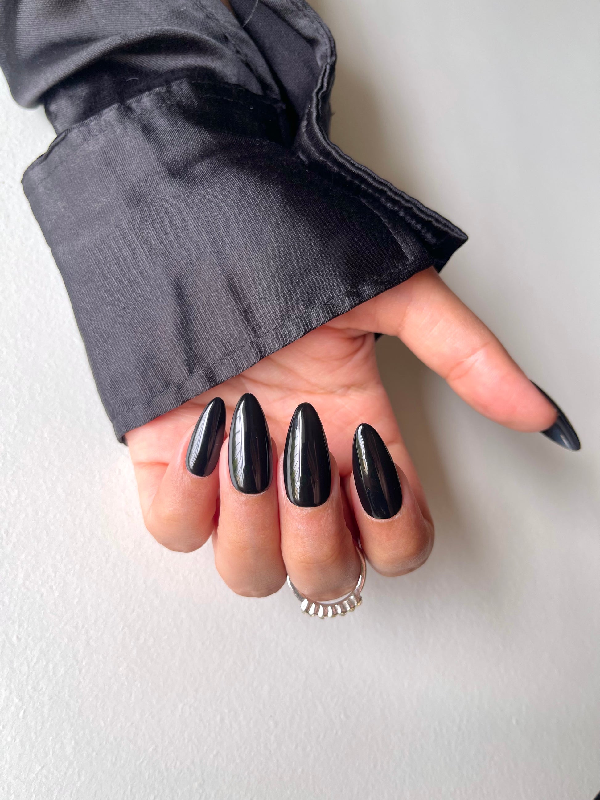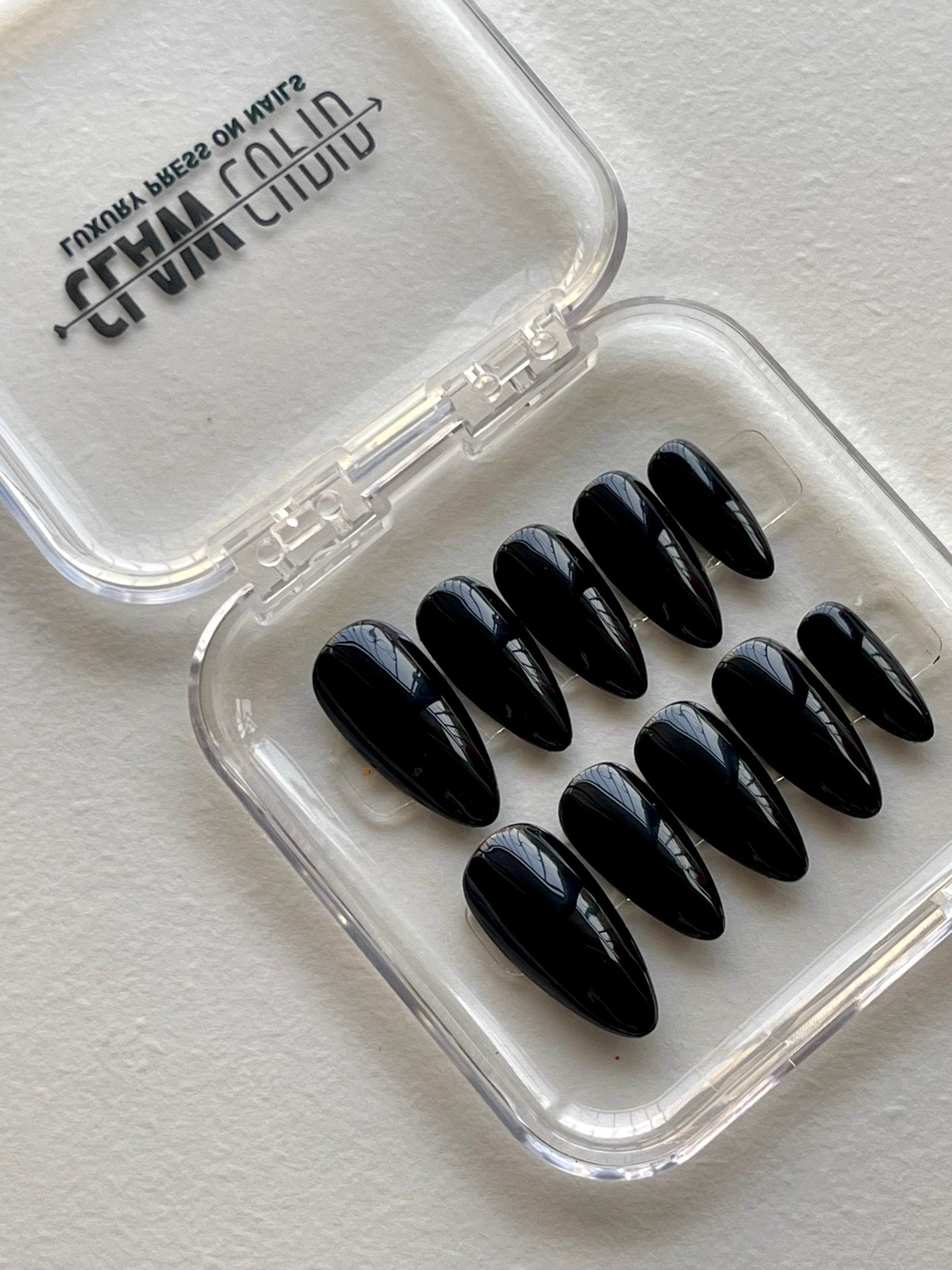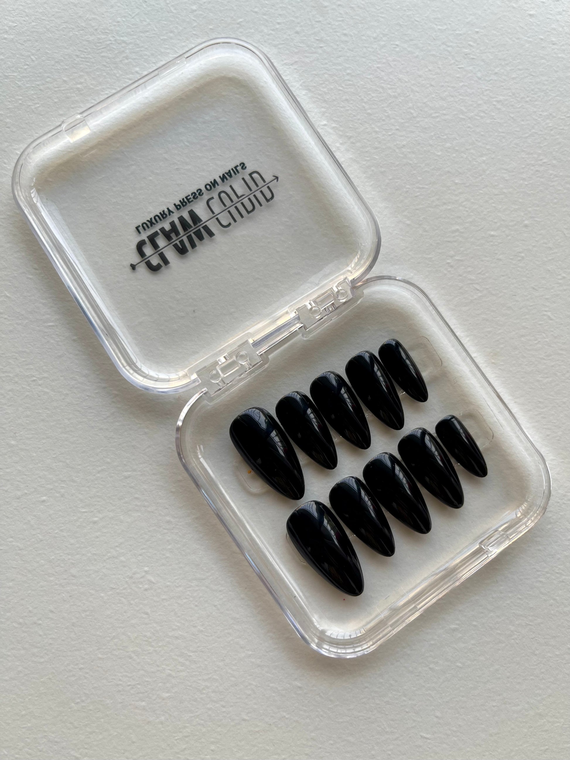 Elevate your look with these ultra-glossy black press-on nails. Bold, modern, and effortlessly chic, they offer a salon-quality finish in minutes. Durable, lightweight, and easy to apply—perfect for everyday wear or a dramatic night-out look.
